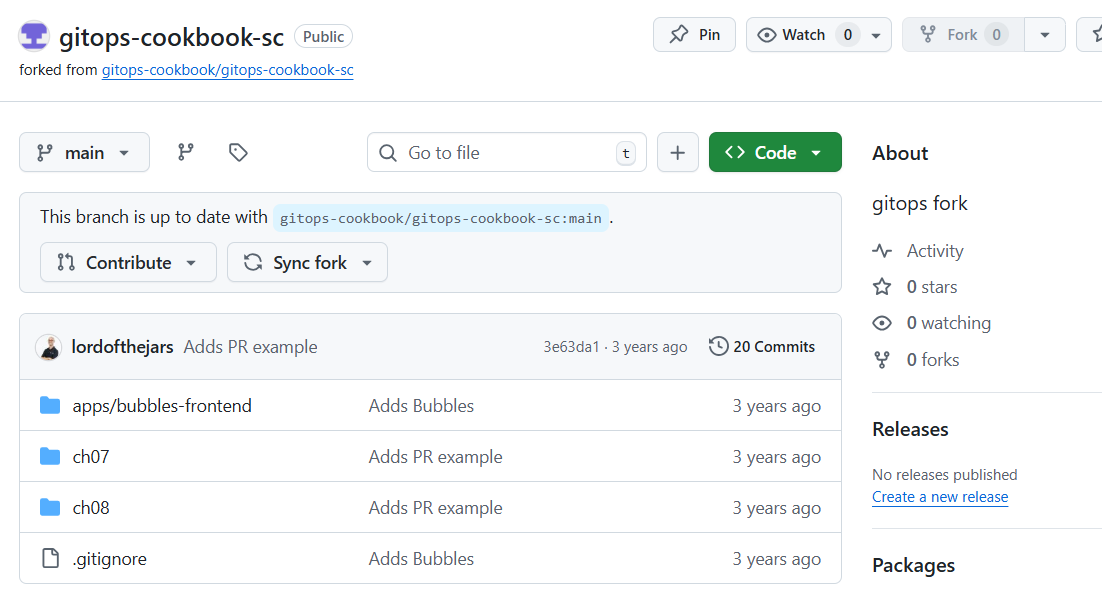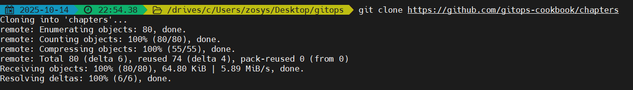 git clone https://github.com/gitops-cookbook/chapters Cloning into 'chapters'...