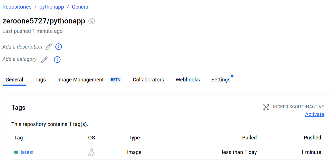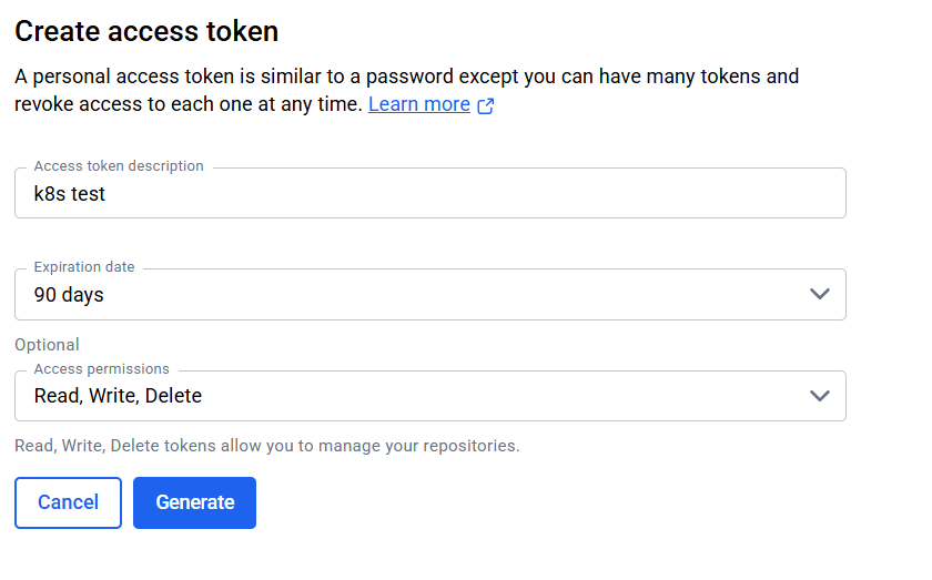 2.1. docker hub컨테이너 레지스트리 등록을 위한 액세스 토큰 생성
