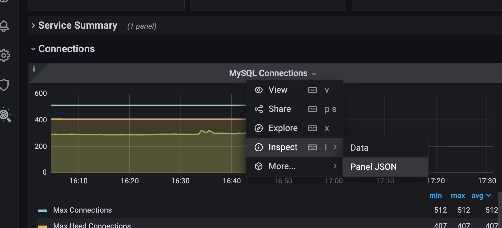 위와 같이 해당 그래프의 panel json을 들어가보면