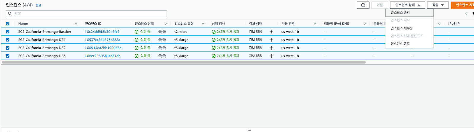 standby용으로 생성된 인스턴스들은 사용하지 않을 때 꼭 인스턴스 중지(종료가 아님, 종료시 인스턴스 삭제됨)를 해야함