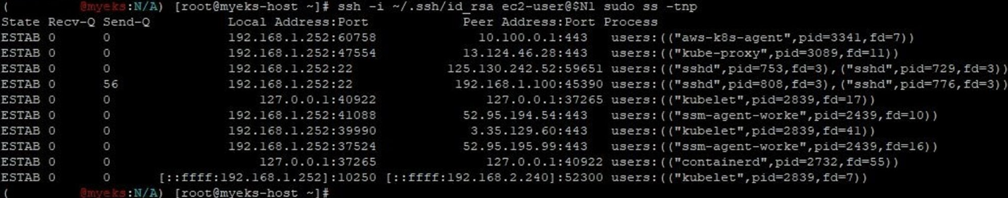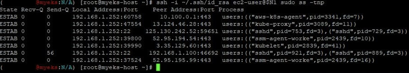 ssh -i ~/.ssh/id_rsa ec2-user@$N1 sudo ss -tnp
