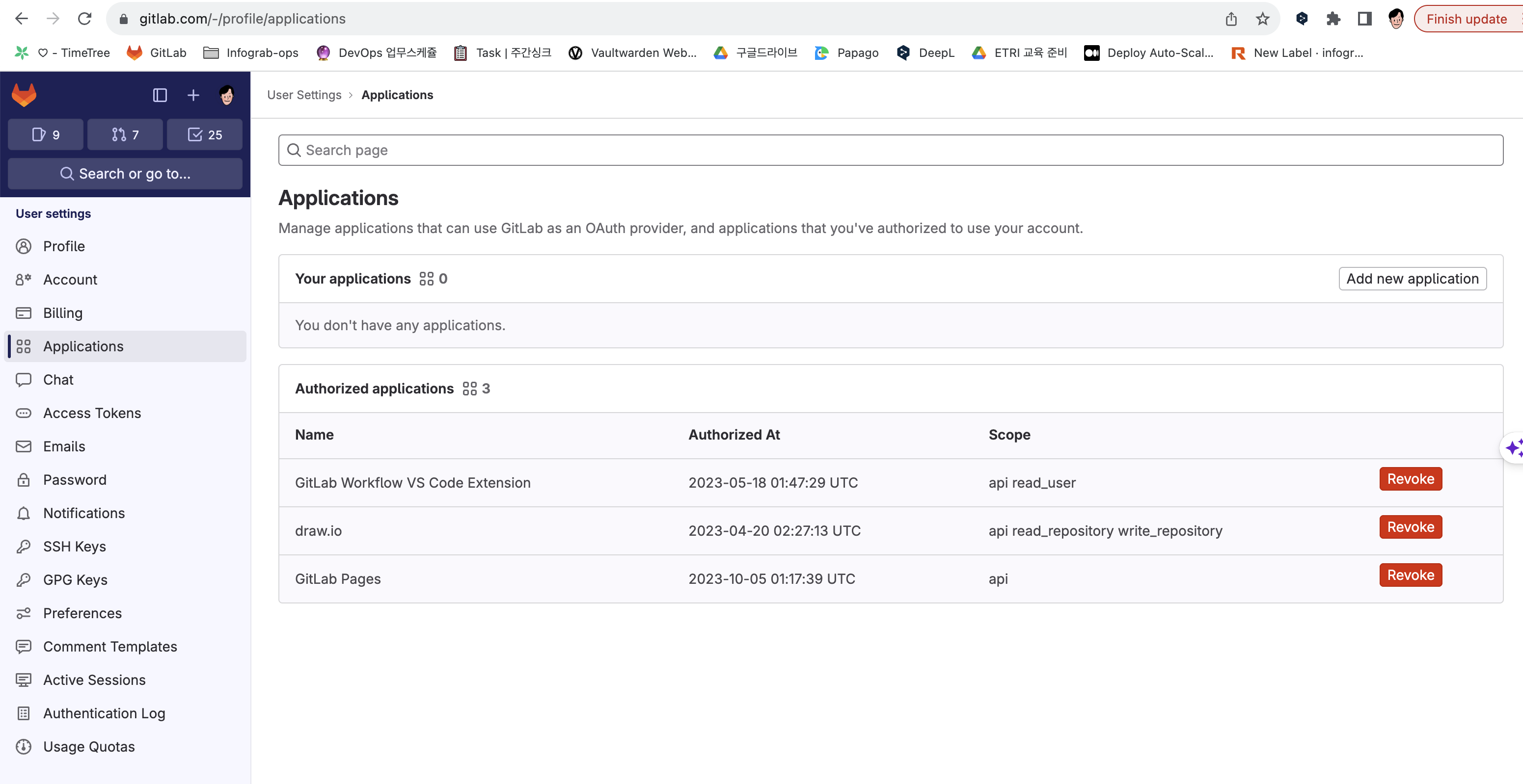 유저 설정중 어플리케이션 클릭하고