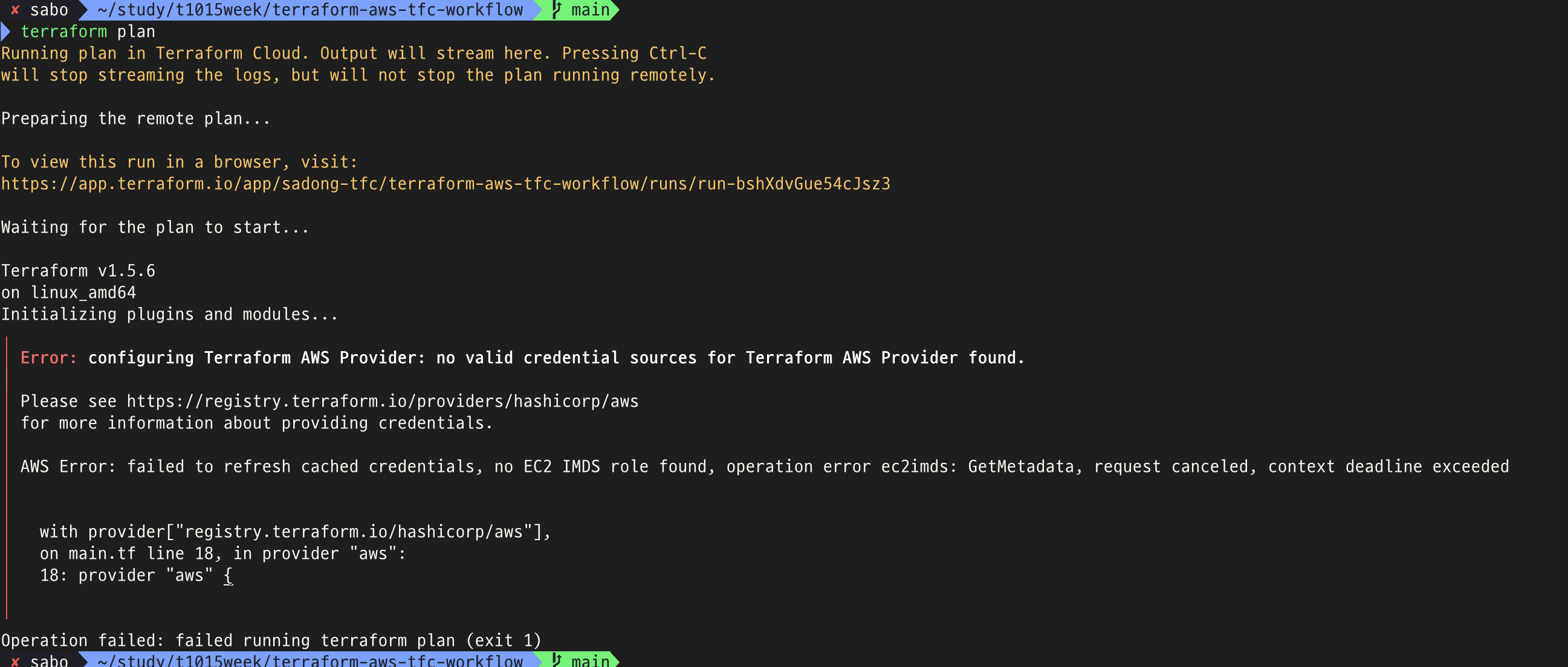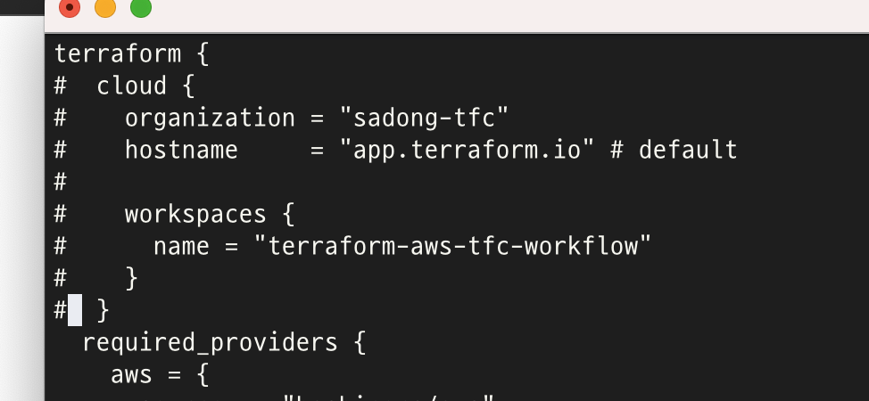 main.tf에 terraform cloud 항목 모두 주석처리하고
