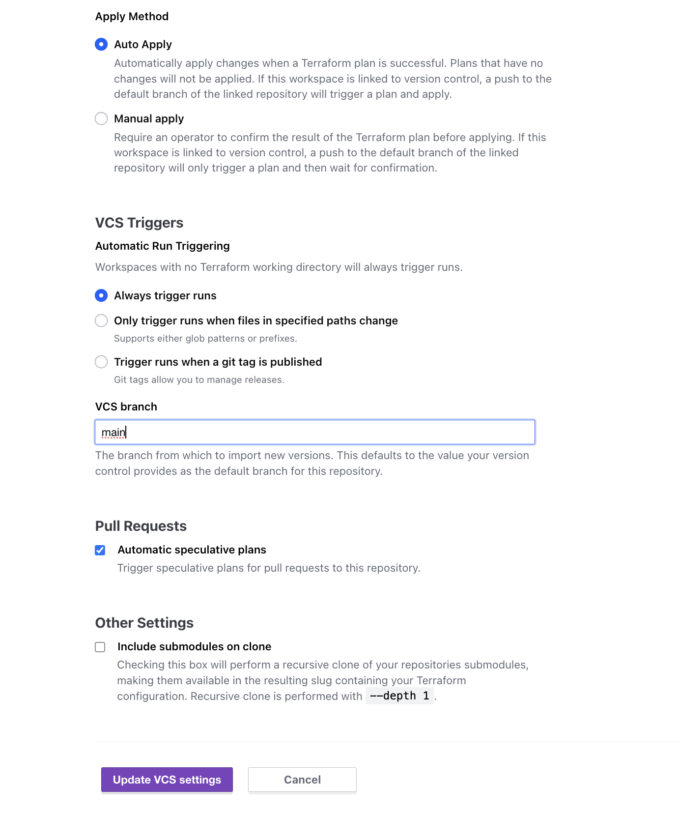 이렇게 하면 워크스페이스와 VCS간 최초 연동되면 마지막 커밋 내용을 기반으로 Run이 실행