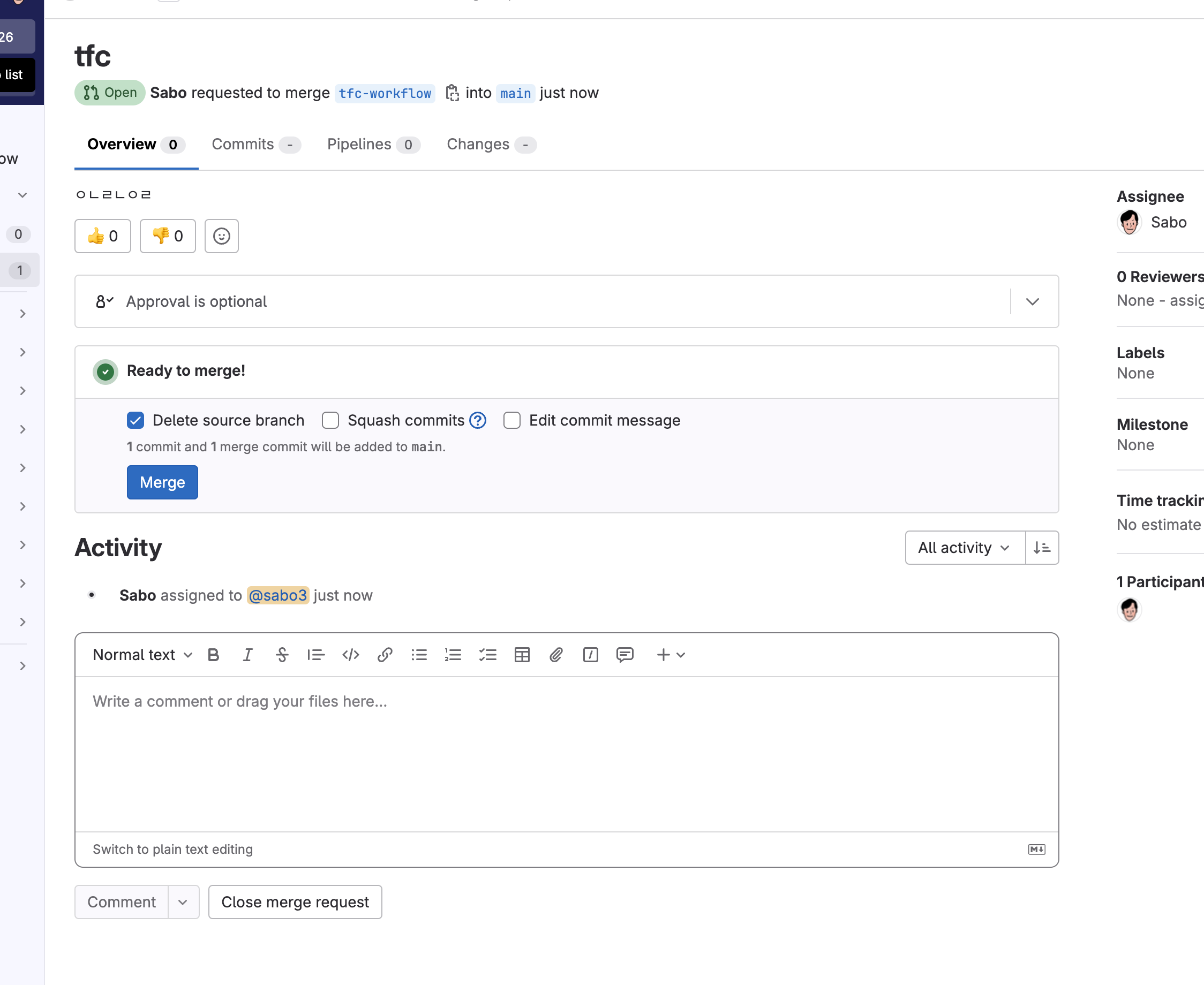 위와같이 MR(PR)을 생성하여 병합을 해보자.