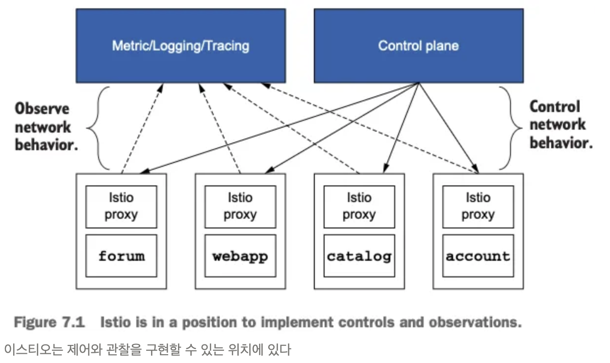 관찰 가능성은 다양한 계층의 계측과 데이터 결합을 포함하는 시스템의 특성이며, 이스티오는 그중 애플리케이션 수준 네트워크 계측을 보조한다.