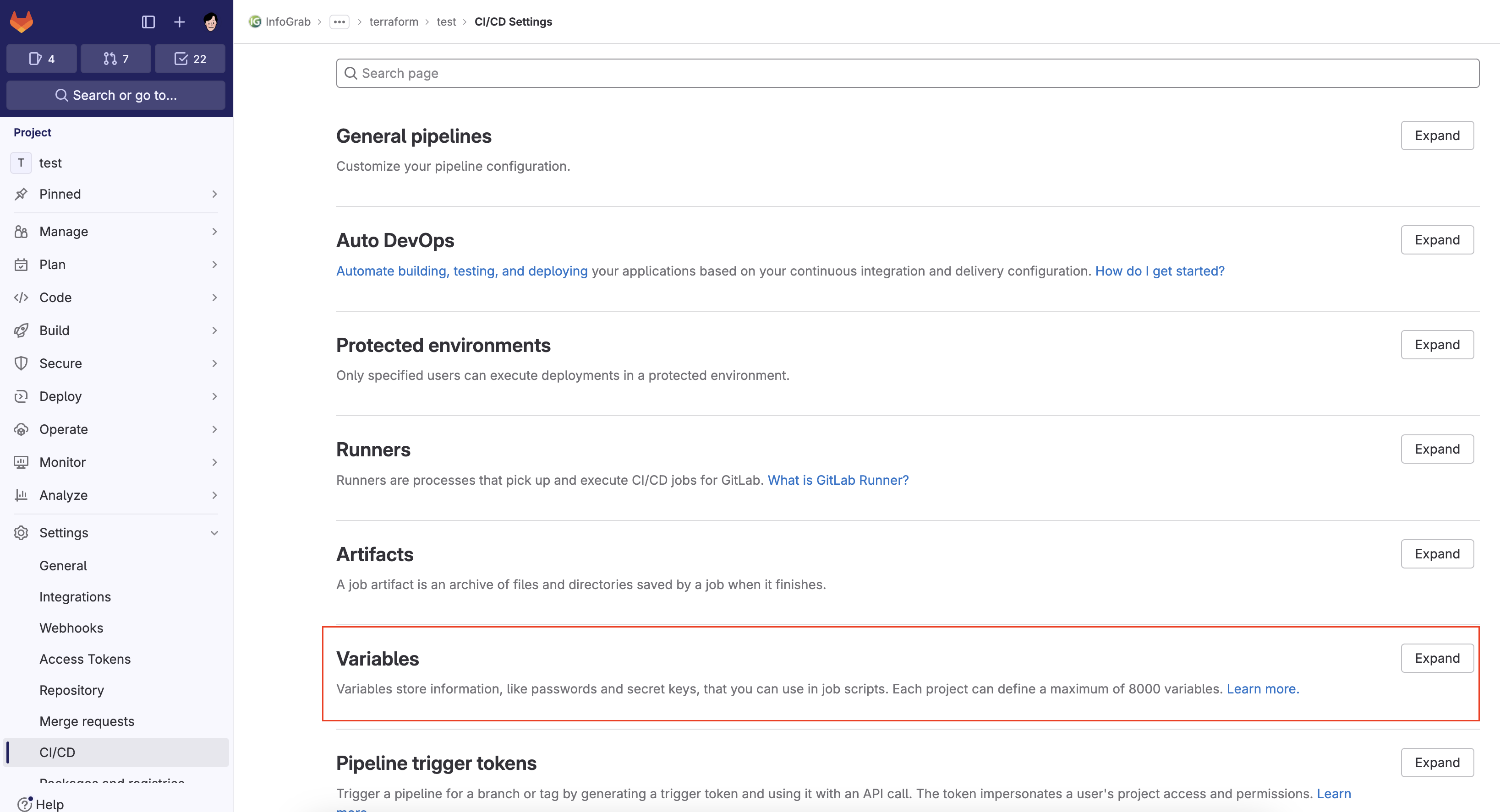 위와같이 VCS 프로바이더를 깃랩으로 설정해주면 입력해야하는 정보들이 확인된다.