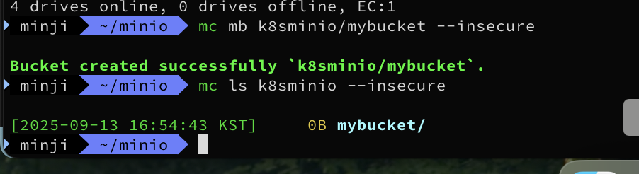 mc mb k8sminio/mybucket --insecure