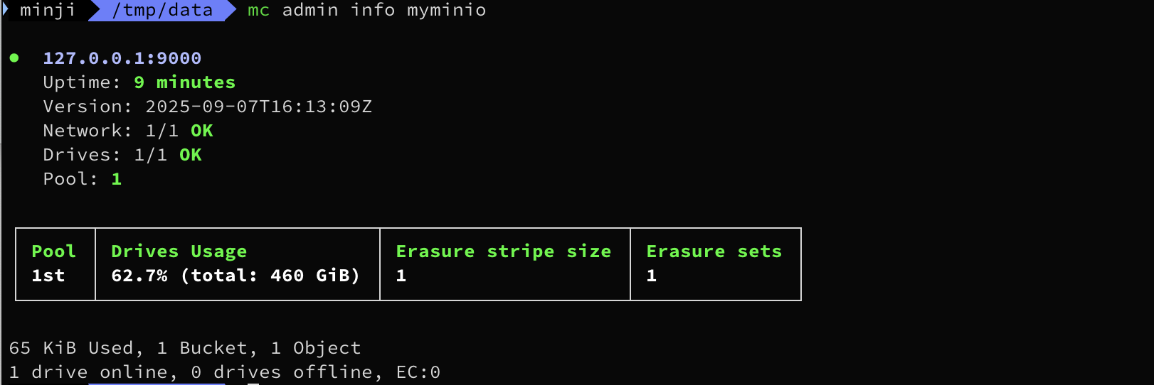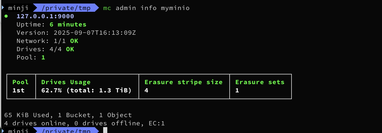 mc admin info k8sminio --insecure