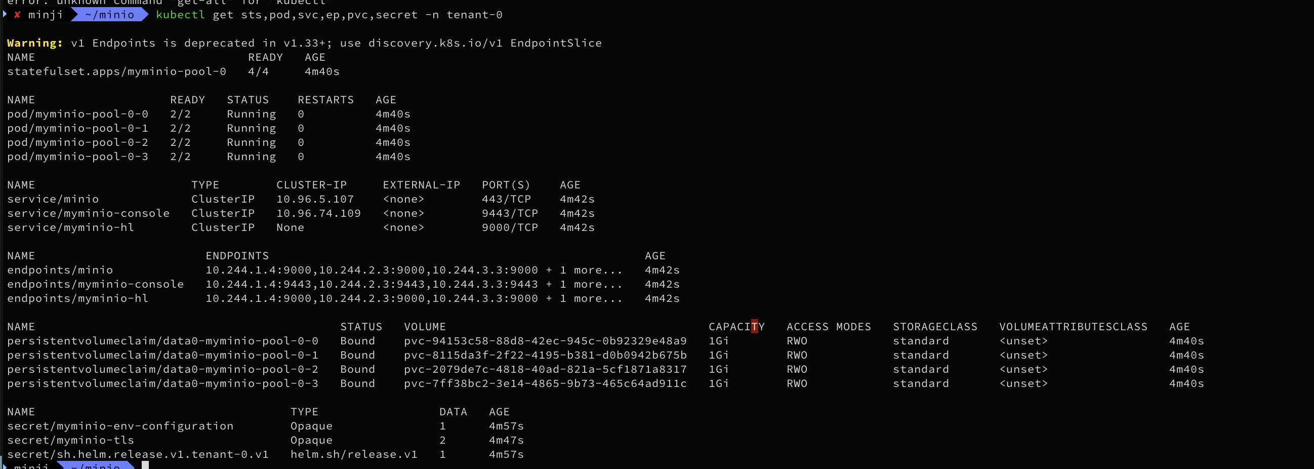 pod/myminio-pool-0-3 2/2 Running 0 84s