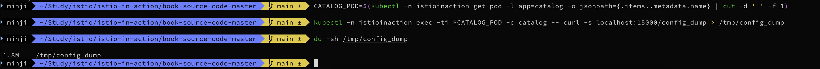 kubectl -n istioinaction exec -ti $CATALOG_POD -c catalog -- curl -s localhost:15000/config_dump > /tmp/config_dump