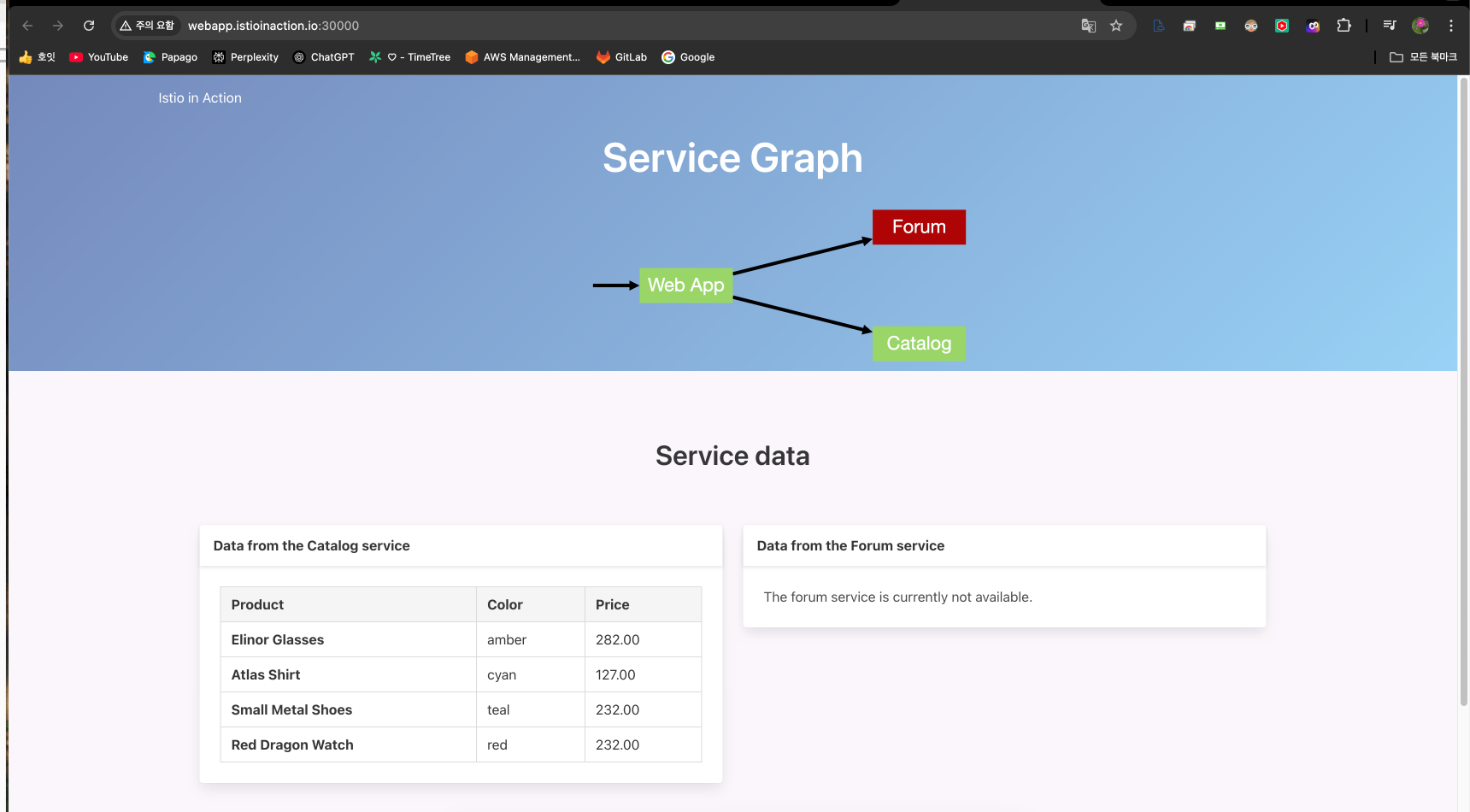 - 서킷 브레이커: DestinationRule의 connectionPool+outlierDetection으로 연결 수/에러 임계값 관리.