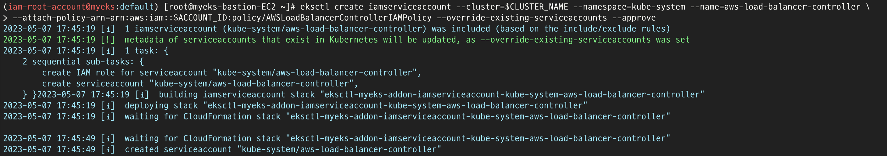 helm install aws-load-balancer-controller eks/aws-load-balancer-controller -n kube-system --set clusterName=$CLUSTER_NAME \\