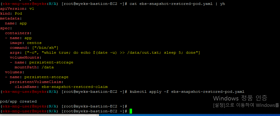 kubectl config rename-context admin@myeks.ap-northeast-2.eksctl.io $NICK