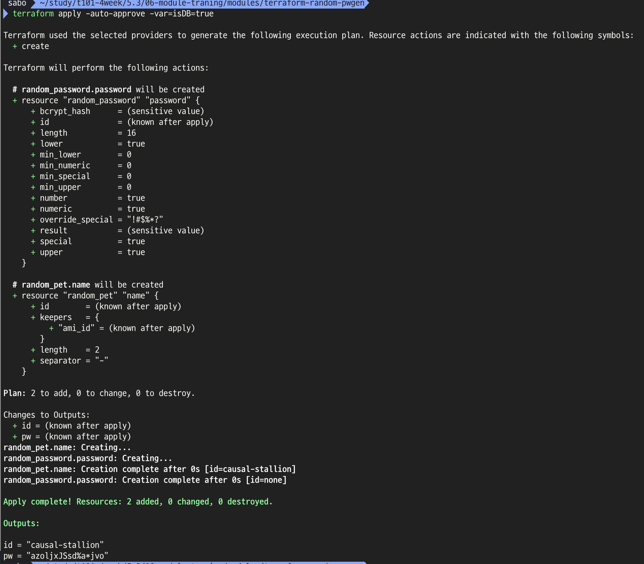 위와같이 모듈을 사용하여 사용자 아이디와 패스워드가 생성되는것을 볼수있다.